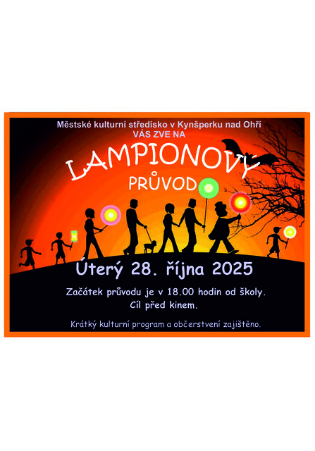 LAMPIONOVÝ PRŮVOD: Srdečně vás zveme na tradiční Lampionový průvod, který odstartuje 28. října v 18:00 od školy s cílem před kinem.